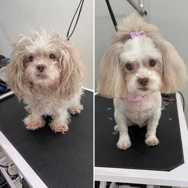 At ZZ Dogs and Paws, There may be additional costs for aggressive behavior, poor coat conditions, or behavior during the appointment which could lead to service being incomplete. Daycare charge $15 will be applied to grooming appointment if pickup is prolonged an hour after pet is ready.
